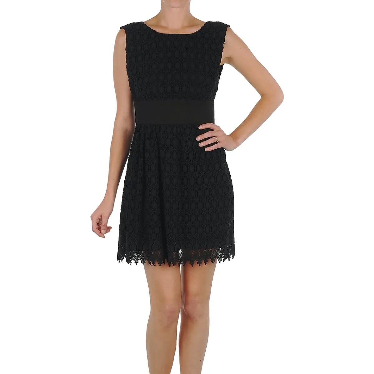 Cette petite robe en dentelle, imaginée par Eleven Paris, est non seulement très estivale mais surtout très tendance. On aime sa large bande située à la taille, qui affine joliment la silhouette.