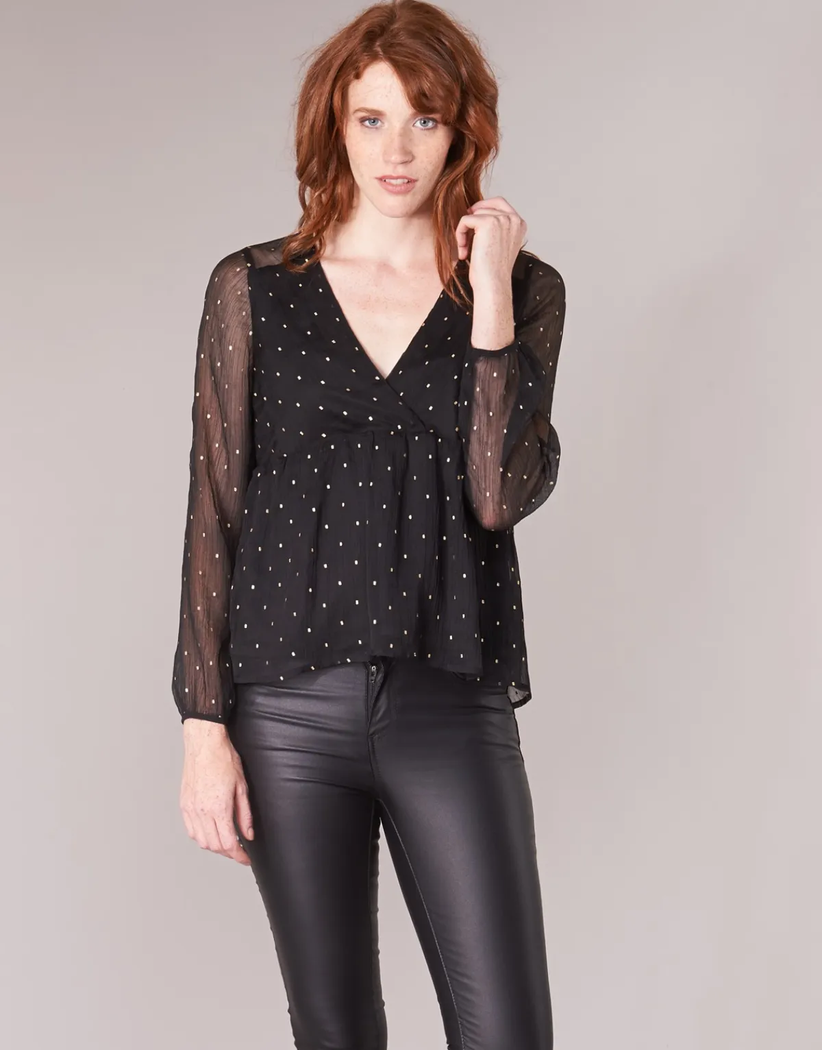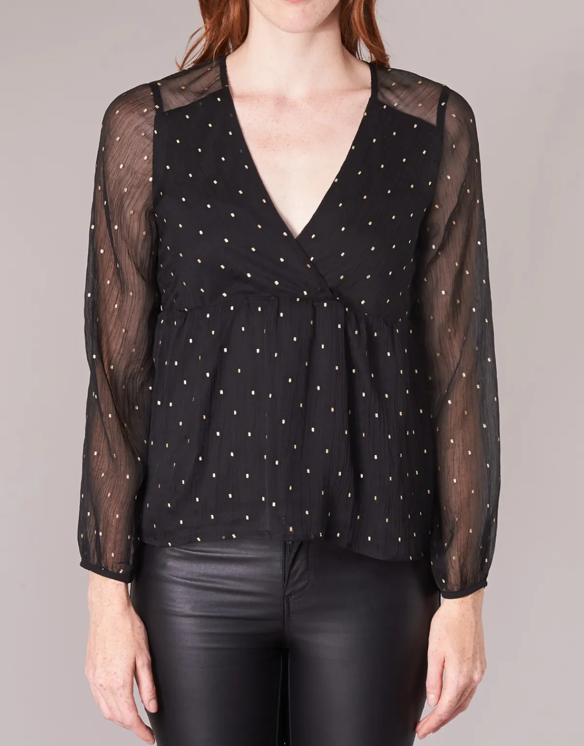Betty London nous interpelle en proposant cette jolie blouse.Sa couleur noire est rehaussée de touches de lurex doré …