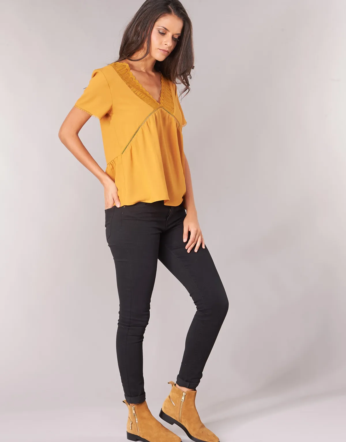 Betty London nous interpelle en proposant cette jolie blouse.Aussi agréable que stylée, elle a tout bon.Sa couleur jaune complète de manière idéale un vestiaire féminin.En résumé : on adore !