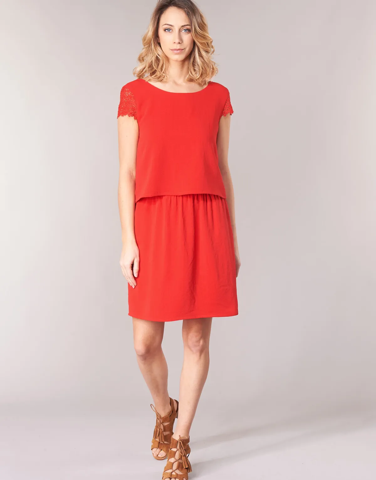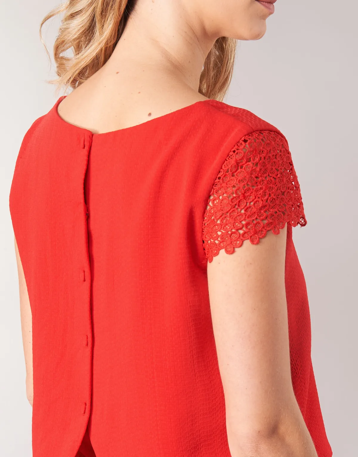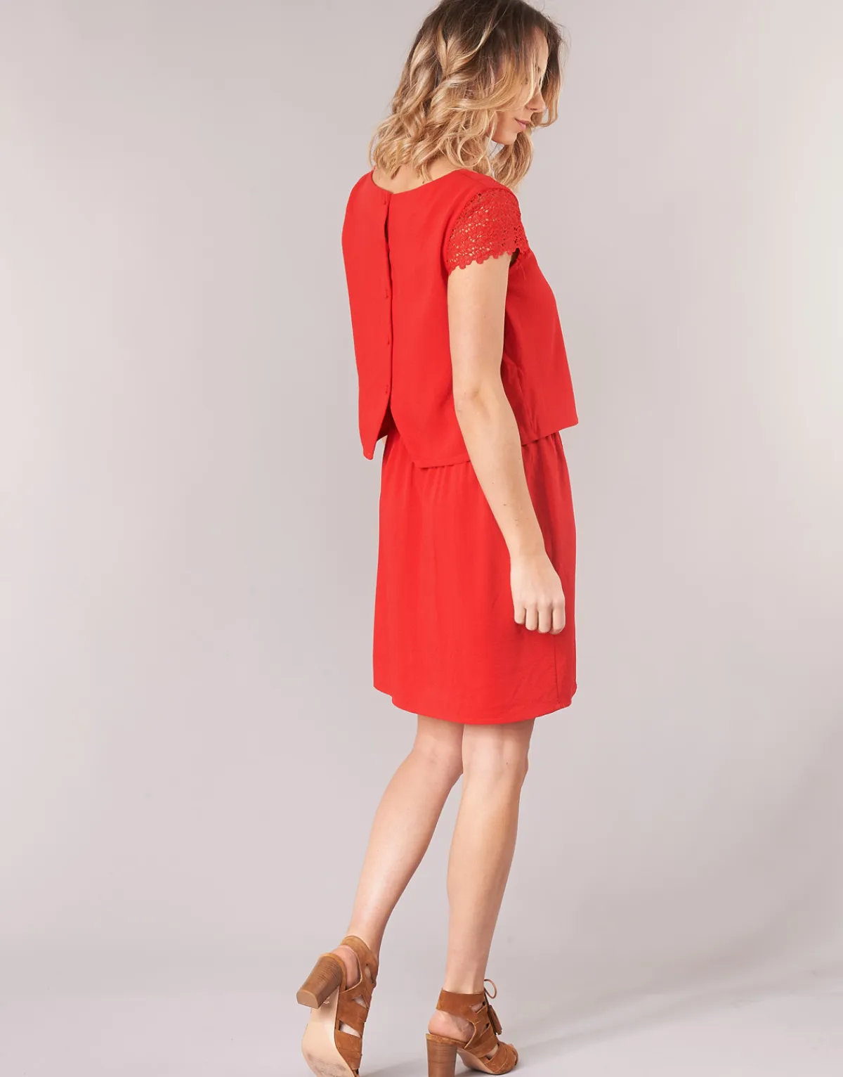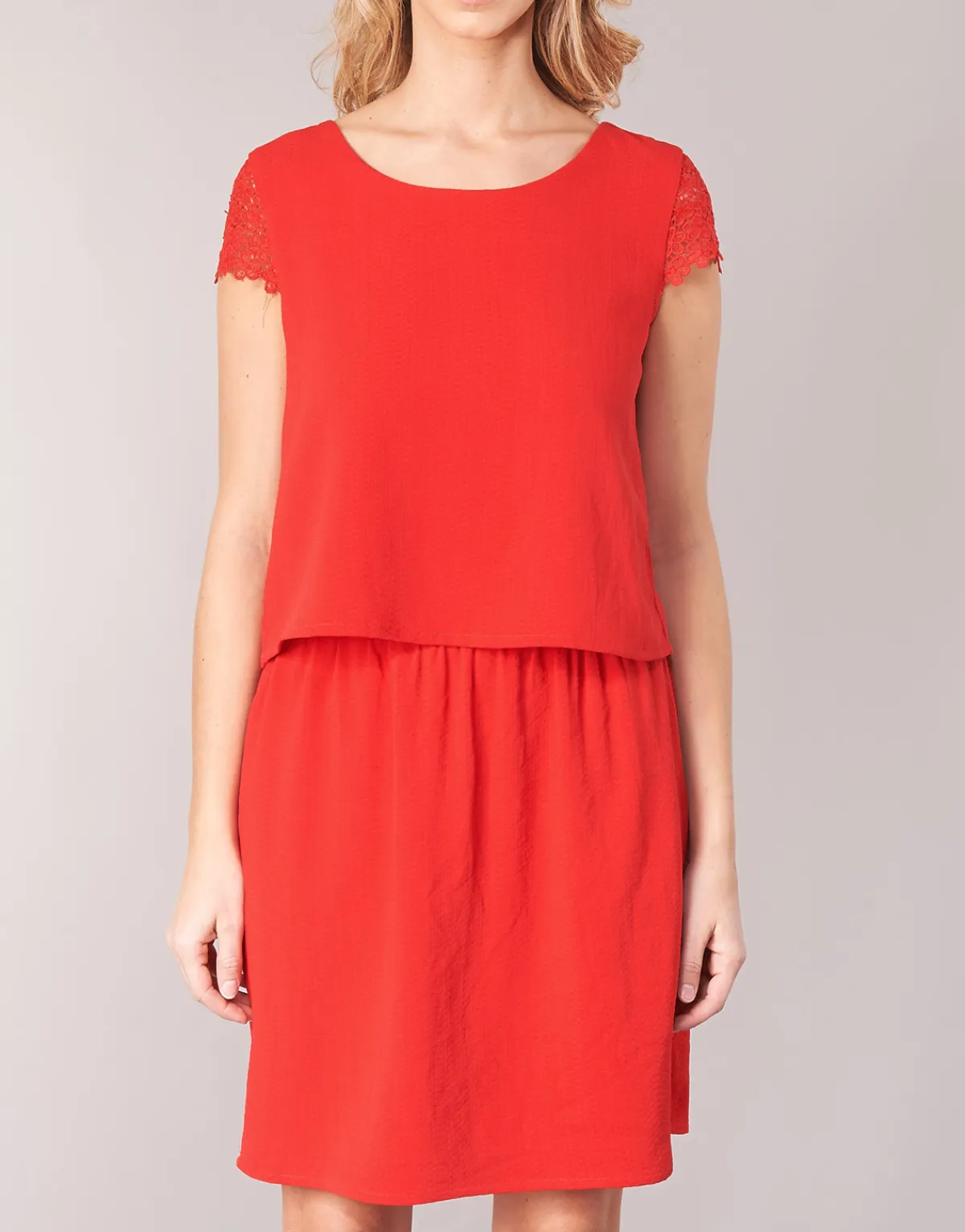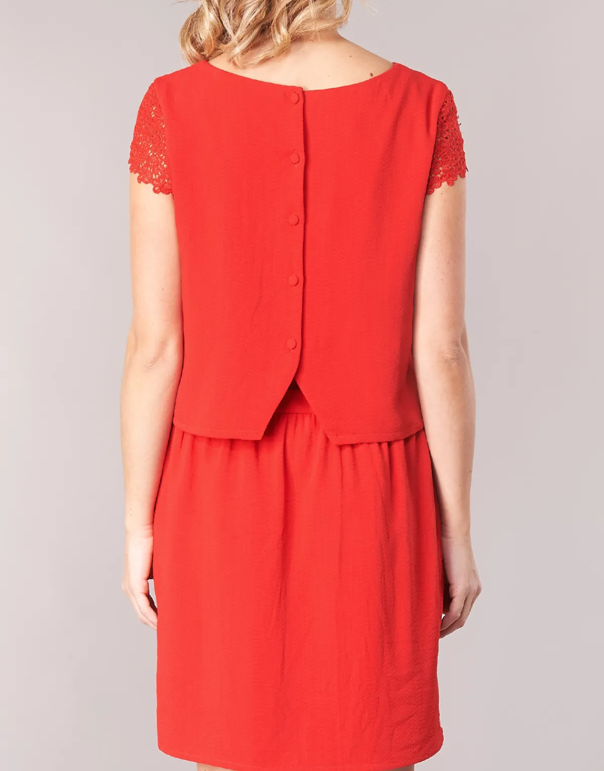 Voici une sublime robe courte de la marque Betty London qui recèle de nombreux atouts ! On craque pour sa jolie couleur rouge combinée à des manches en dentelle et ouverture boutonnée au dos ! Un modèle d’élégance et de raffinement.