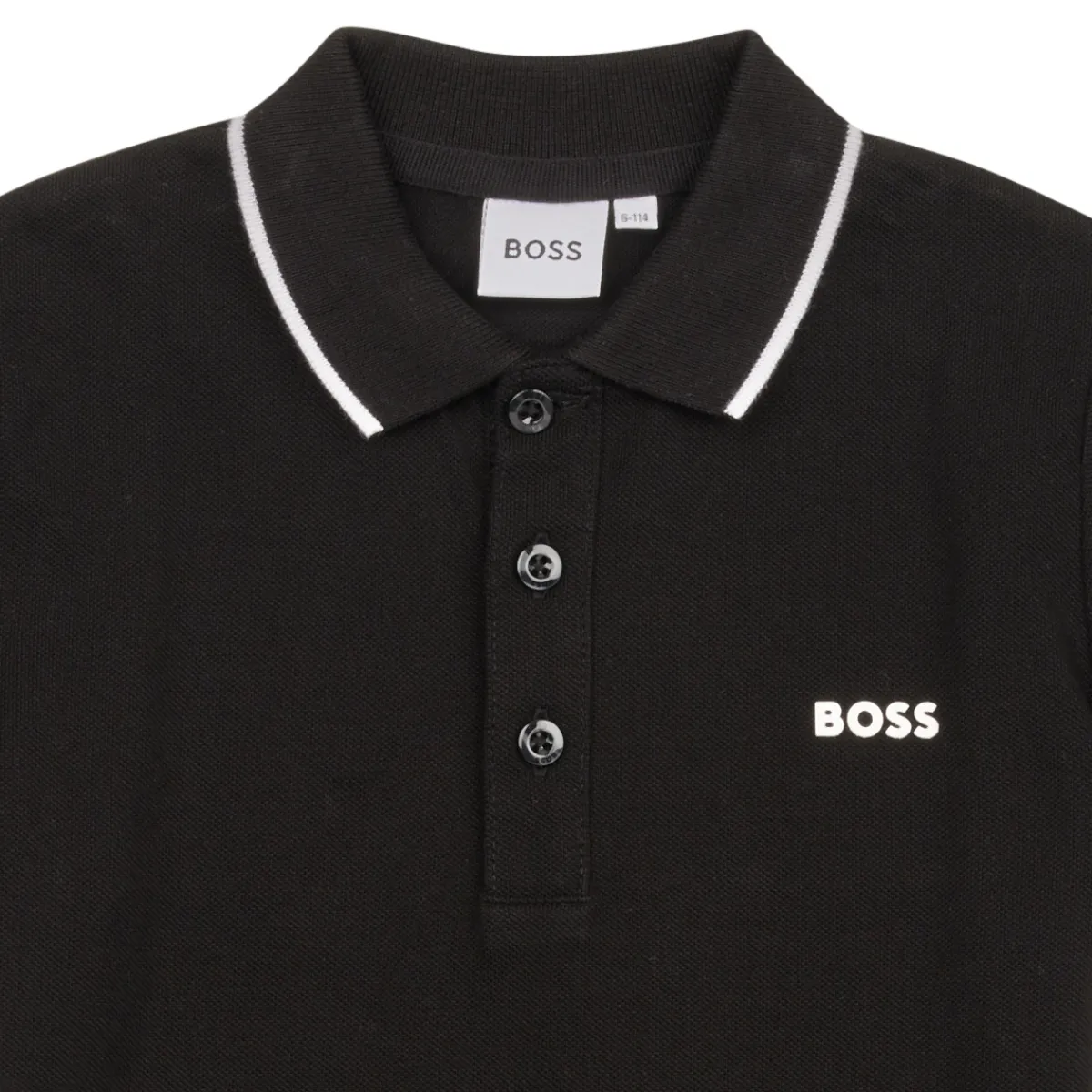 Quoi de mieux qu’un polo pour afficher un look BCBG ? Celui-ci nous est dévoilé par la marque BOSS. Créé en coton (100%) , ce modèle arbore un coloris noir. Nos bouts de chou sauront se l’approprier pour l’accorder à jeans et pantalons.