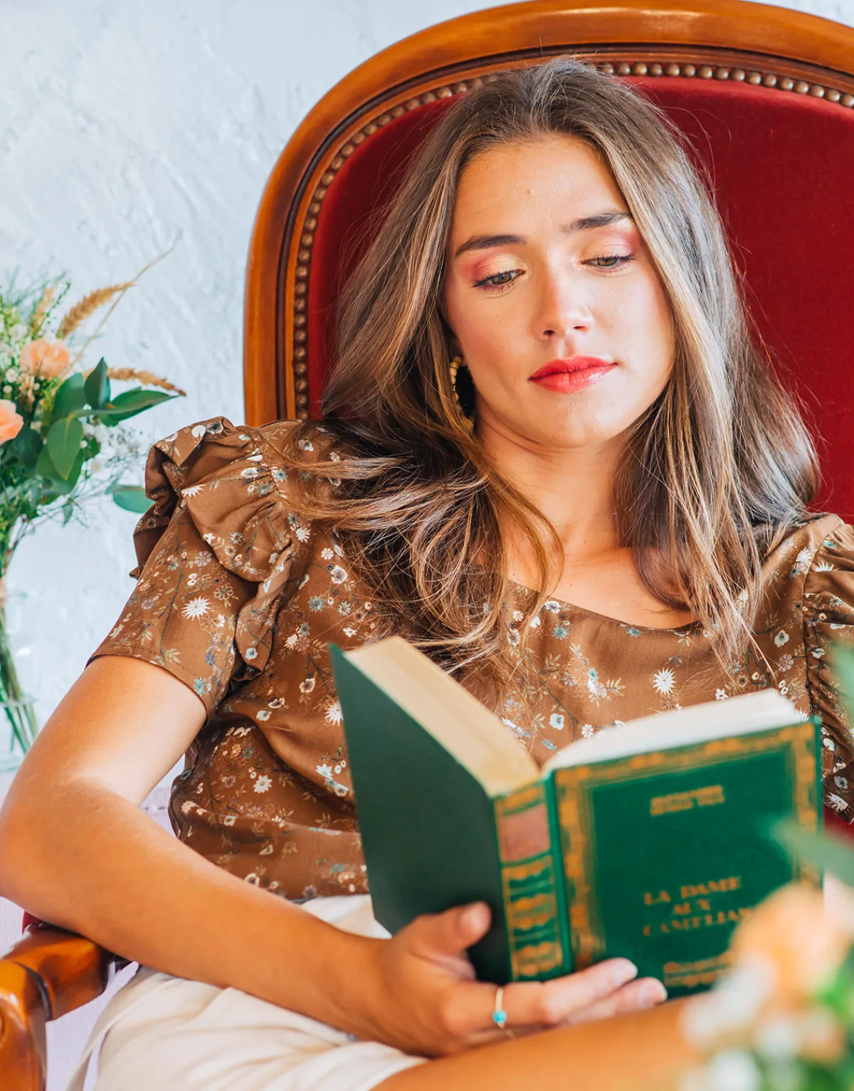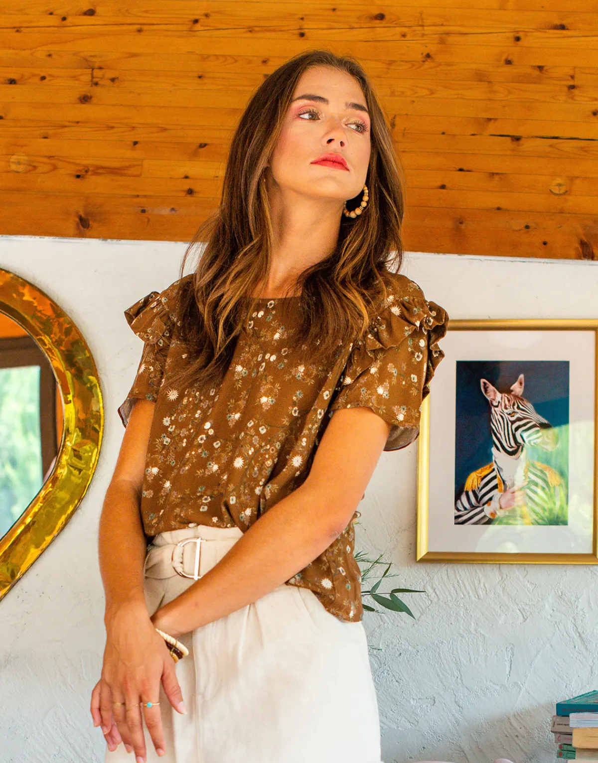 Blouse Céleste manches courtes avec petits volants aux épaulesTissu fluide agréable à porterDos croiséBoutons doré…