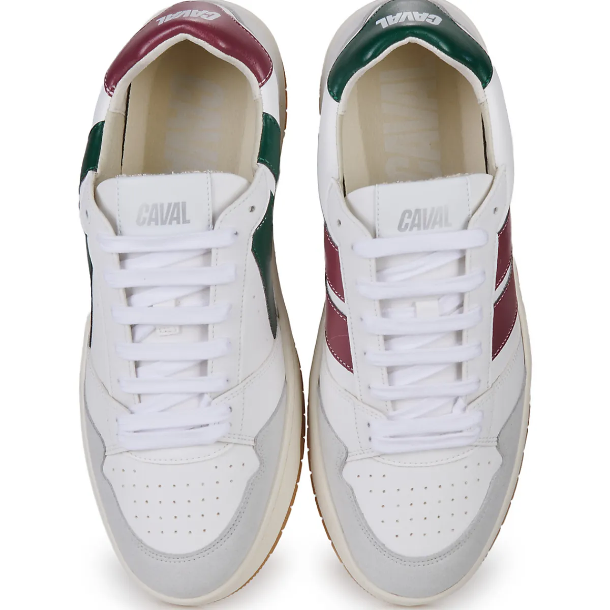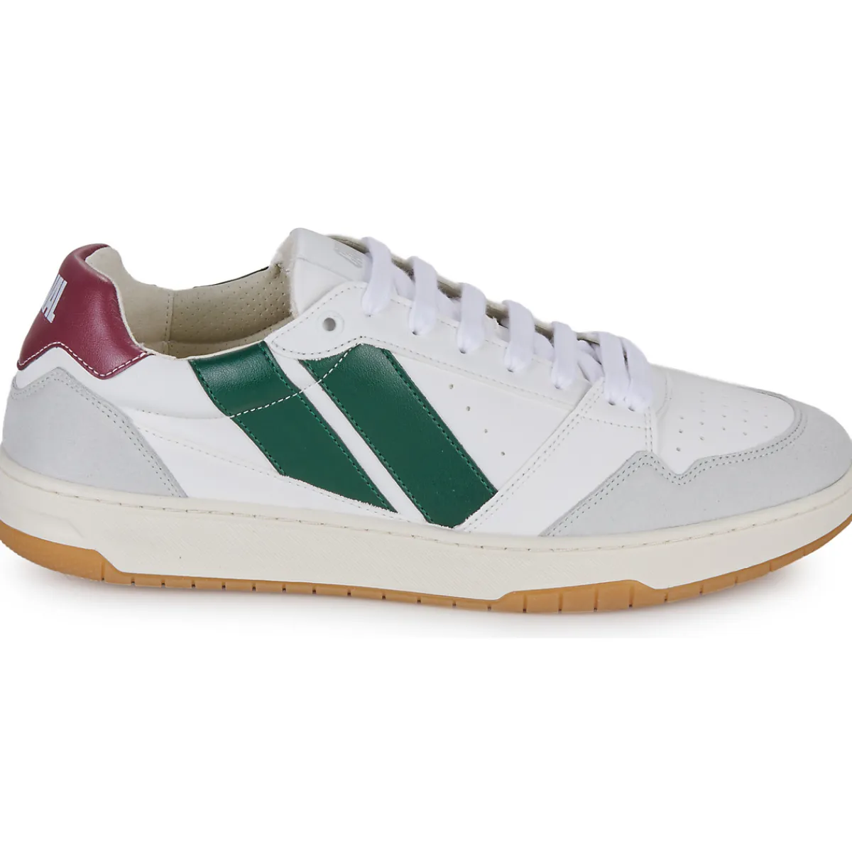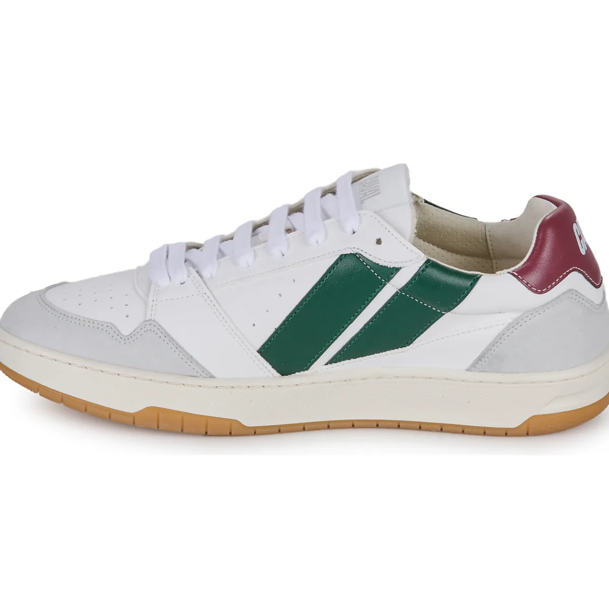 Base blanche de la tige composée de fibres de maïs (43%), viscose (26%) et PU recyclé (31%) et empiècements couleurs composés de PU recyclé (65%), PL recyclé (30%) et viscose (5%) / Doublure en microfibre OEKO-TEX / Semelle extérieure cousue latérale en caoutchouc recyclé.