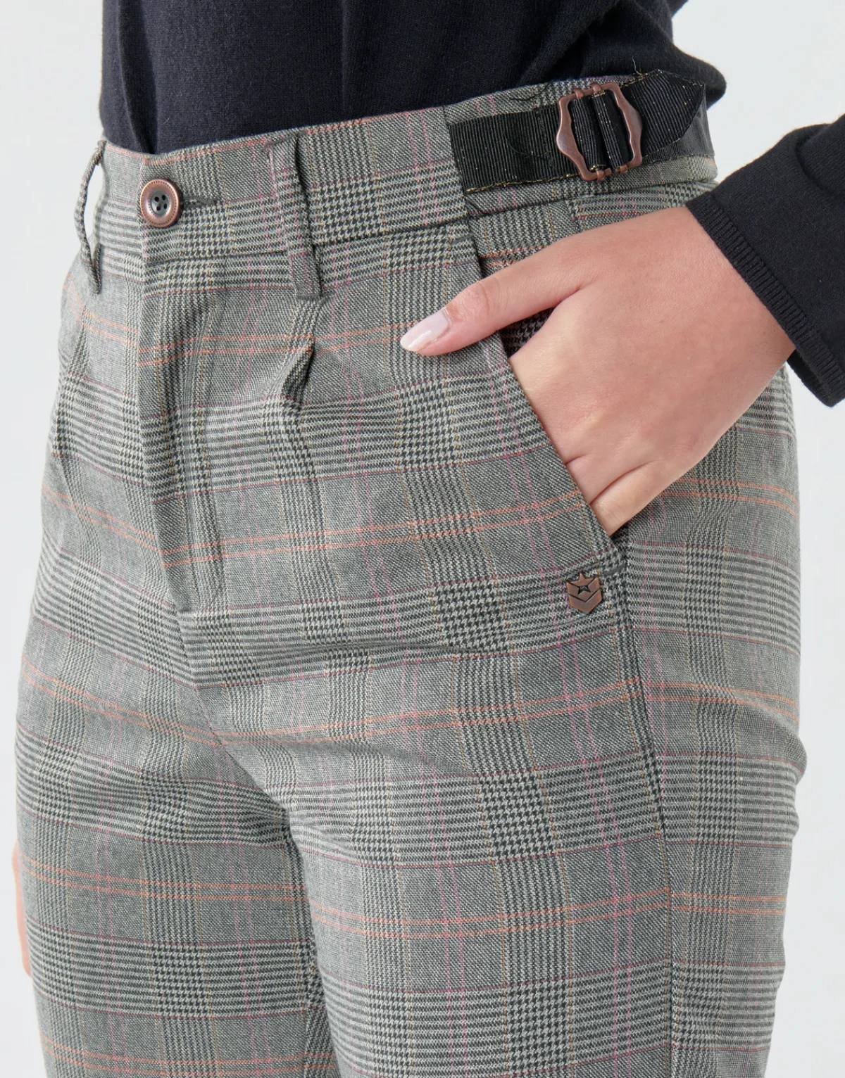 Freeman T.porter nous propose ce pantalon hautement tendance et féminin. Avec son imprimé prince de Galles, il ne manq…
