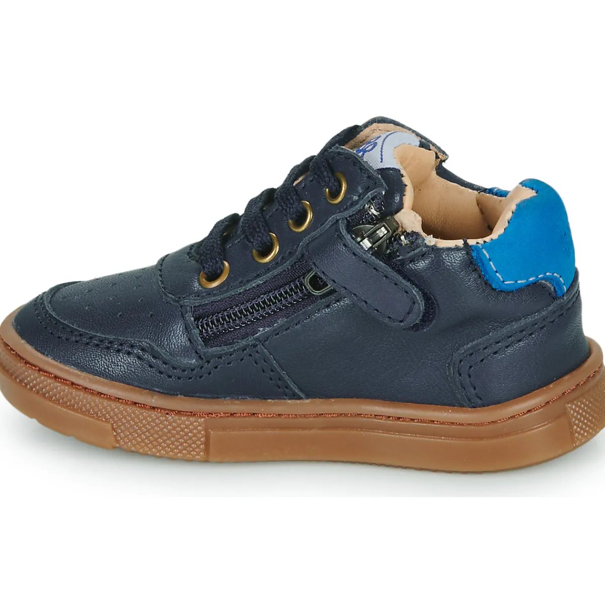 Chaussure flex, particulièrement soupleSemelle amovibleConstruction de la chaussure pensée spécifiquement pour accompagner les premiers pasContrefort asymétrique : empêche le pied de dévier de sa surface d鈥檃ppui en le maintenant dans l鈥檃xe de la marcheArrière ergonomique et emboîtantRenfort avant pour protéger les orteils des chocsRenfort en mousse à l’arrière pour protéger les molletsSemelle antidérapanteSystème de serrage par laçage permettant au talon de rester en place, et donc d’éviter la crispation des orteils.Zip et patte velcro pour éviter que la fermeture ne descende.Produit certifié sans produits nocifs par la charte Innoshoe, comme l’ensemble des chaussures GBB.