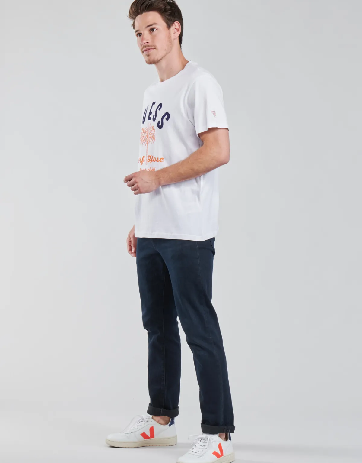 Chez Guess, le T-shirt à manches courtes est une véritable institution et c’est bel et bien le cas de celui-ci. Avec u…