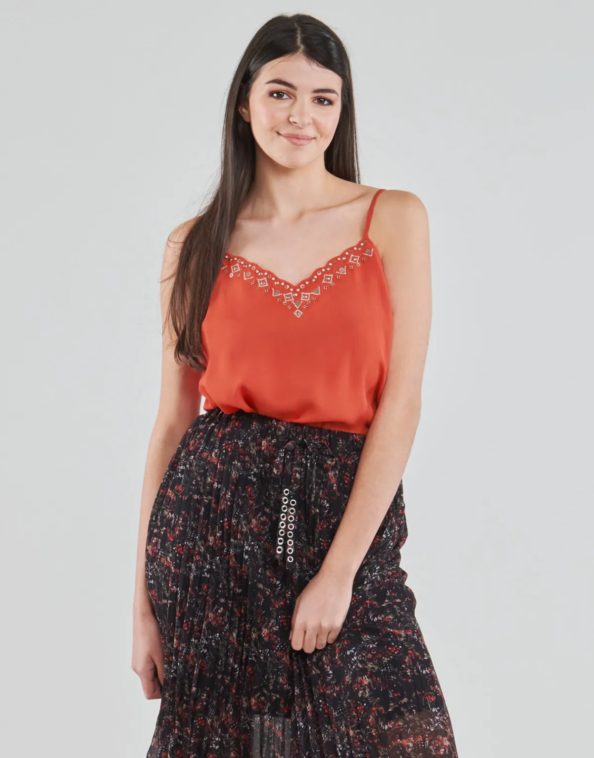 On craque littéralement pour la couleur rouge de ce débardeur estival. C’est en viscose (100%) et 100 que Ikks l’a c…