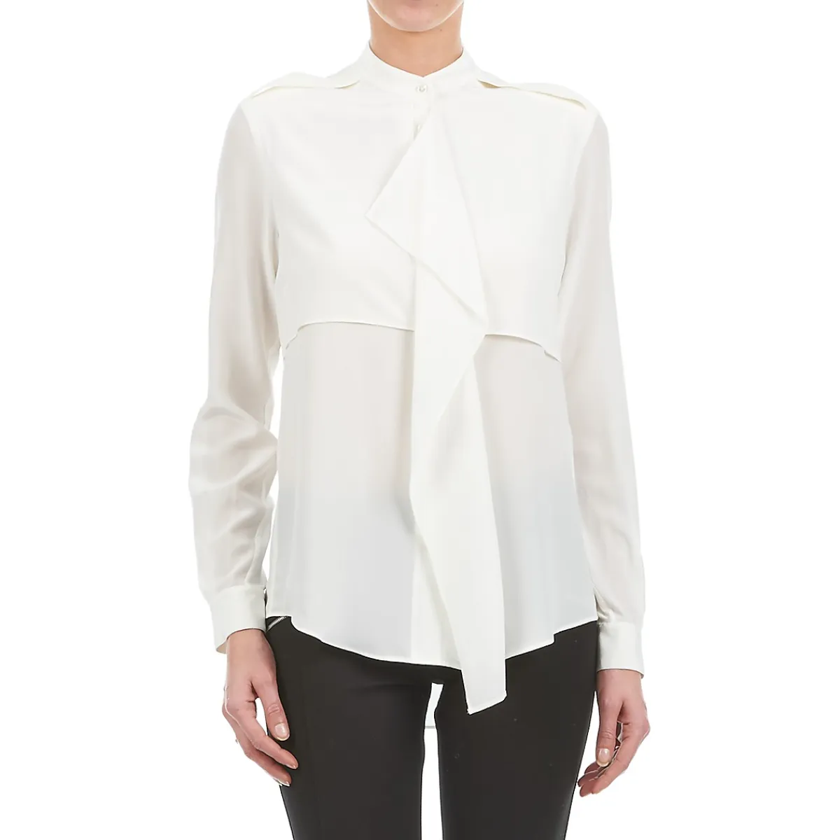 Avec son col à jabot et sa coupe fluide à manches longues, ce top féminin mérite la première place dans notre clas…