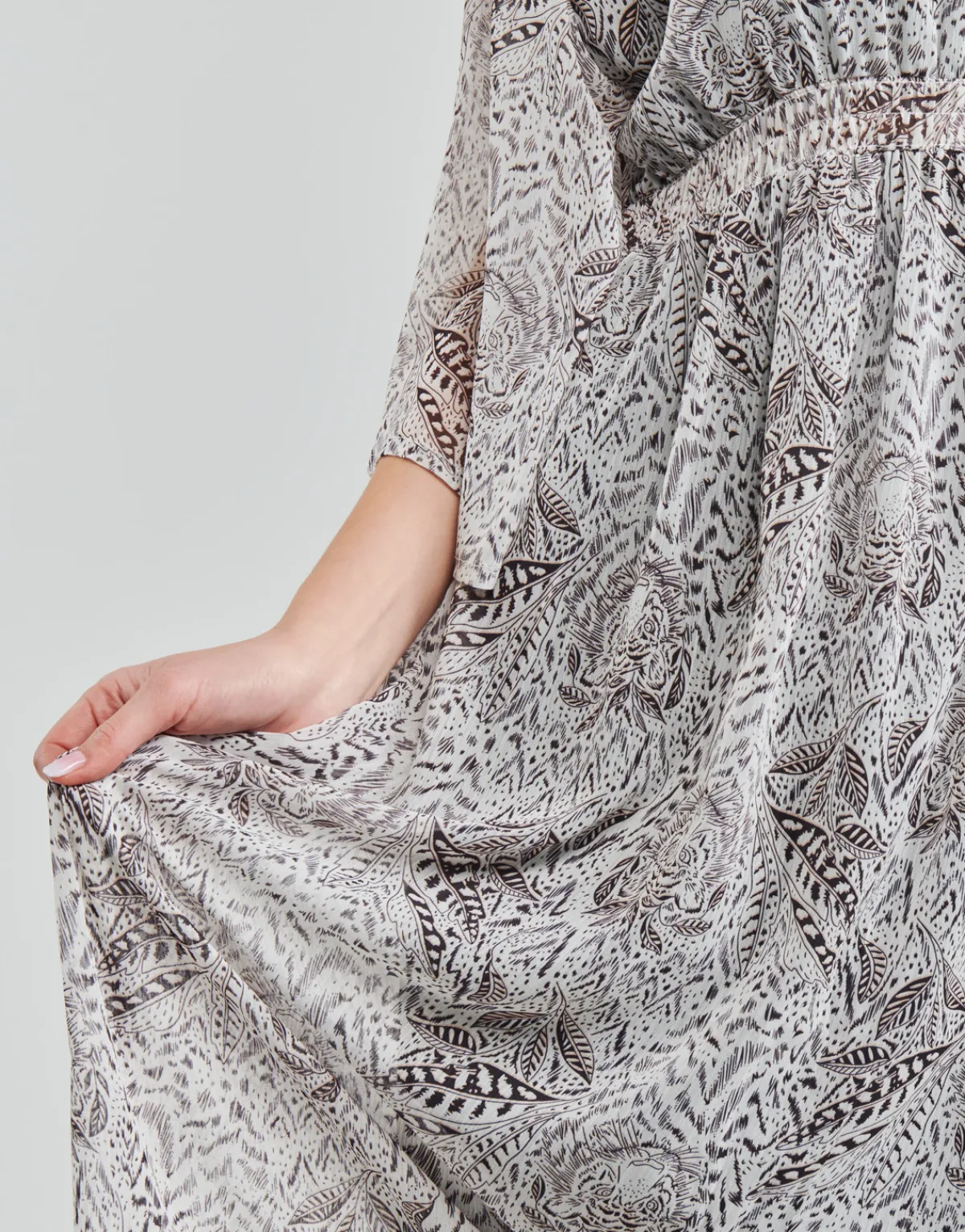 C’est une superbe robe longue que propose Moony Mood cette saison.On aime autant son tomber fluide que son bel imprimé…