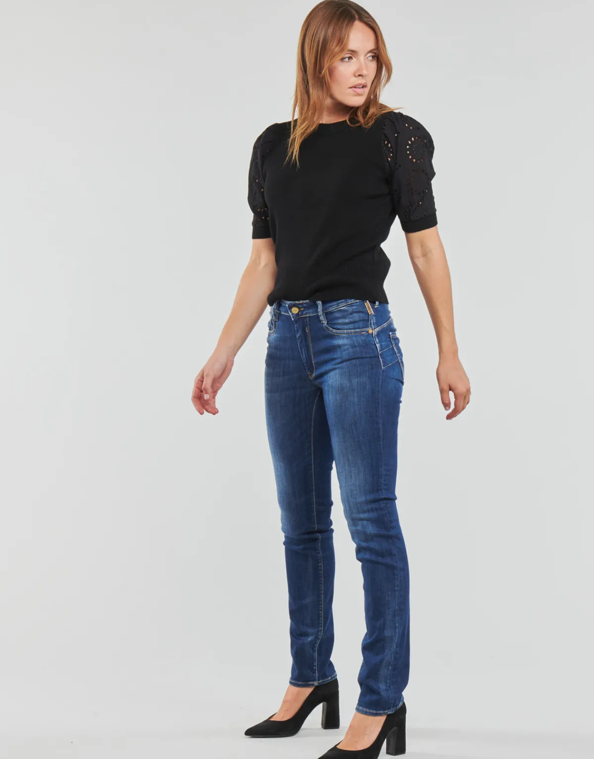 Le Temps des Cerises nous propose cette saison un jean parfaitement réussi. Doté d’une couleur bleue et d’une coupe dr…