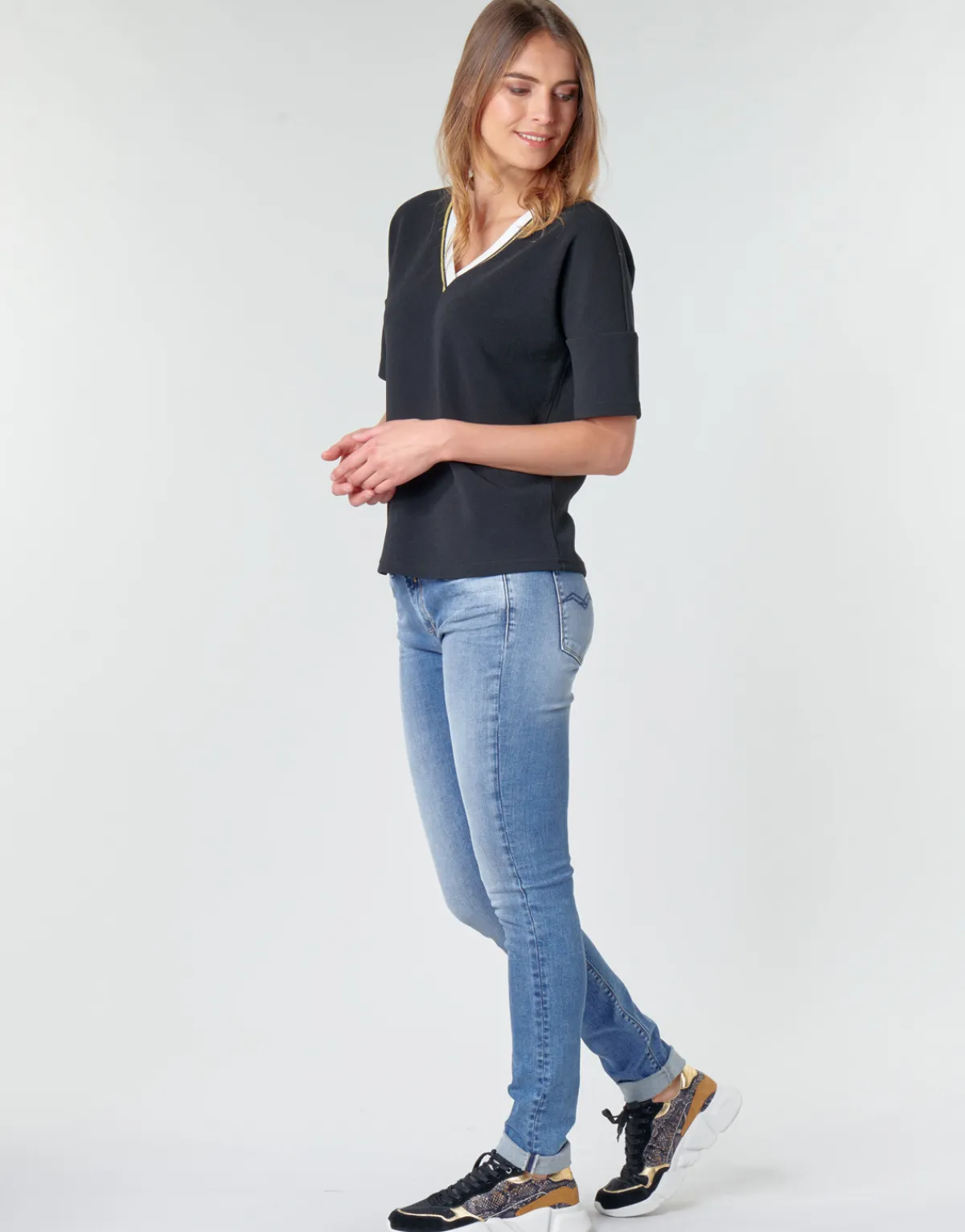 La mode vous colle à la peau ? Ce skinny jean est fait pour vous ! On l’aime pour sa couleur bleue et sa matière en coton (98%) et élasthanne (2%) . Replay met ainsi nos formes à l’honneur et ça nous va bien !