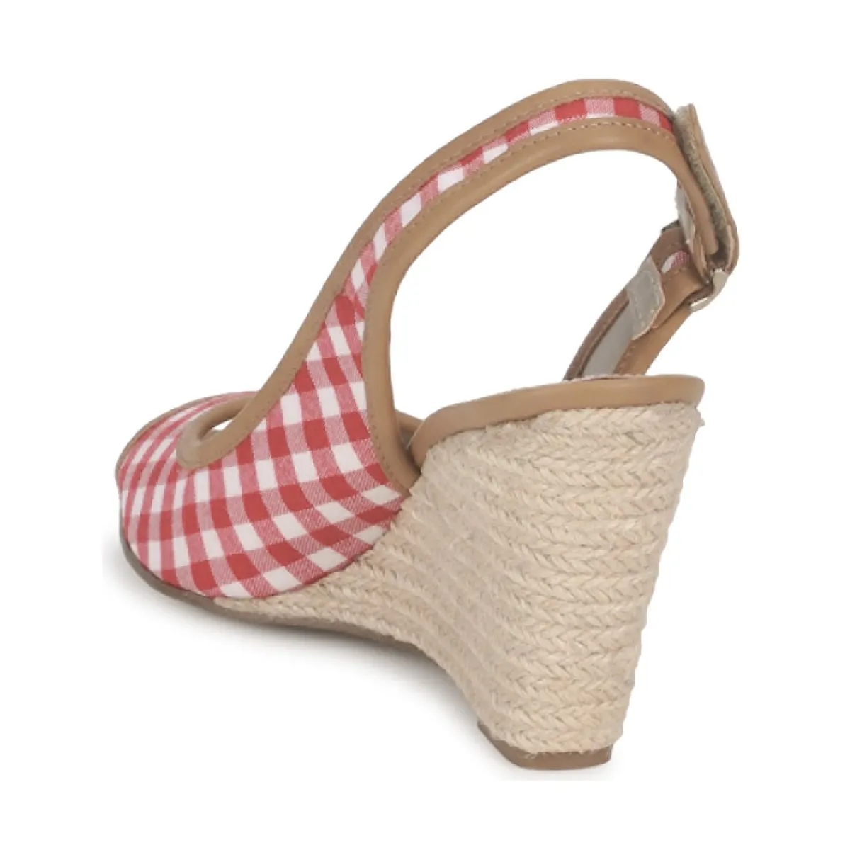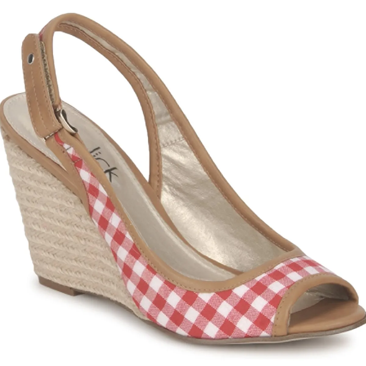 Ce qui m’a séduite dans ce nu-pieds compensé, c’est l’association de son imprimé vichy et de sa semelle corde qui lui donne des allures bucoliques et un brin rétro.