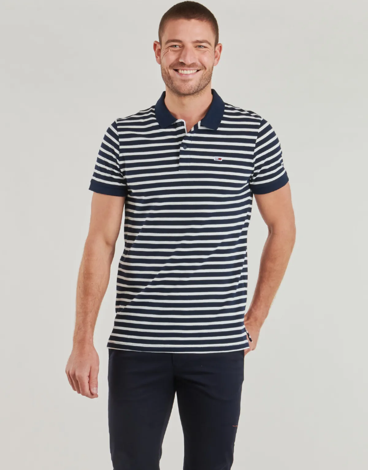Ce polo Tommy Jeans mêle avec brio esprit classique et caractère sport chic. Couleur bleu marine et composition en co…
