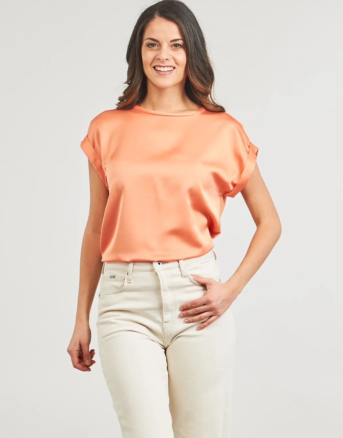 On craque complètement pour cette blouse Vila. On aime sa couleur orange et sa coupe ample, très actuelle. Portée ave…