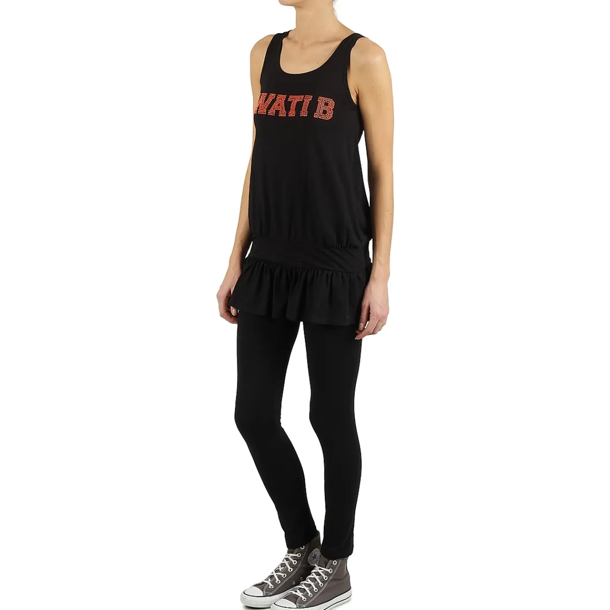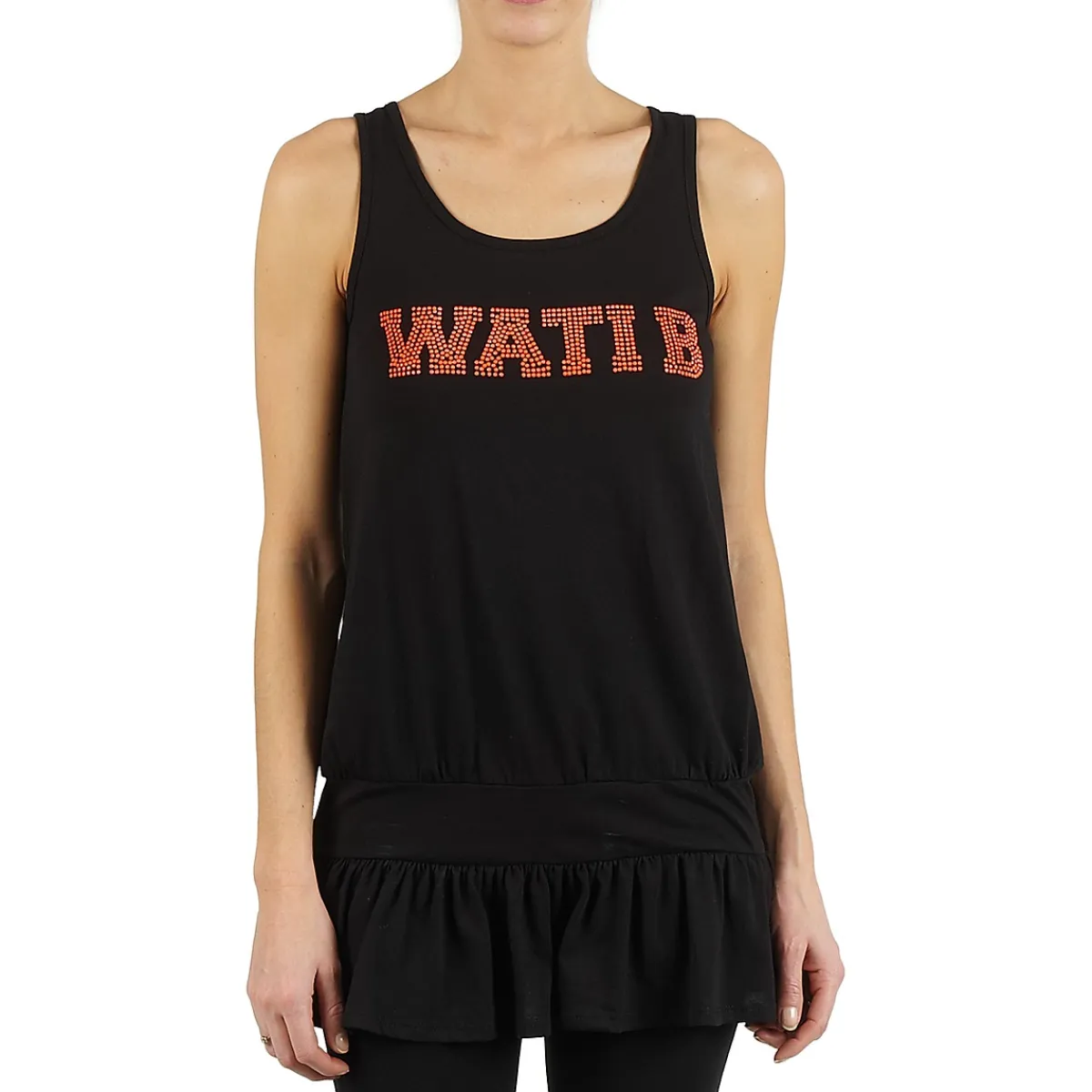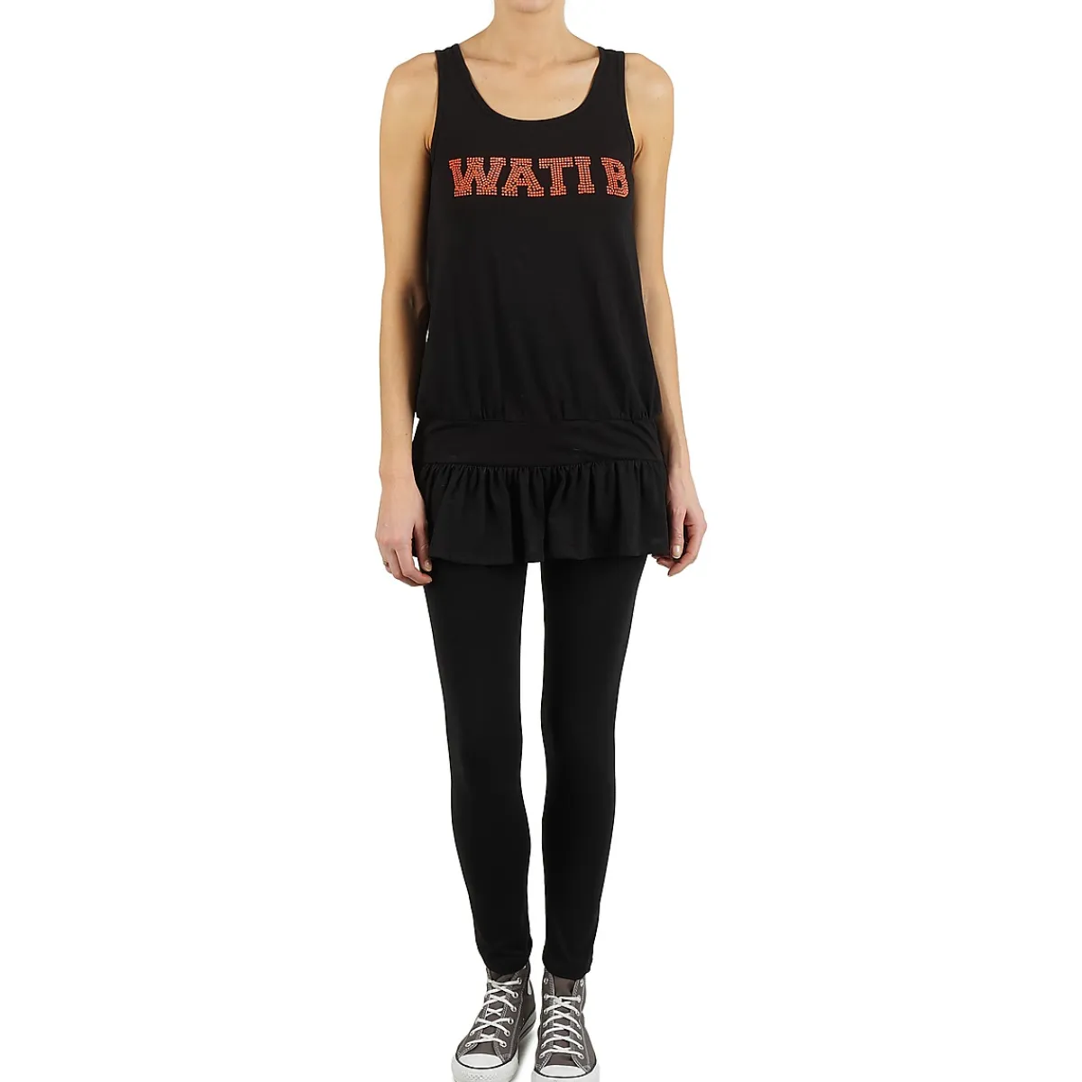 Voilà une robe typiquement sportswear que les adeptes de looks urbains vont tout simplement adorer. Imaginée par Wati B, elle arbore le nom de la marque en lettres brillantes sur la poitrine, et un élastique qui ressert le tissu au niveau des hanches.