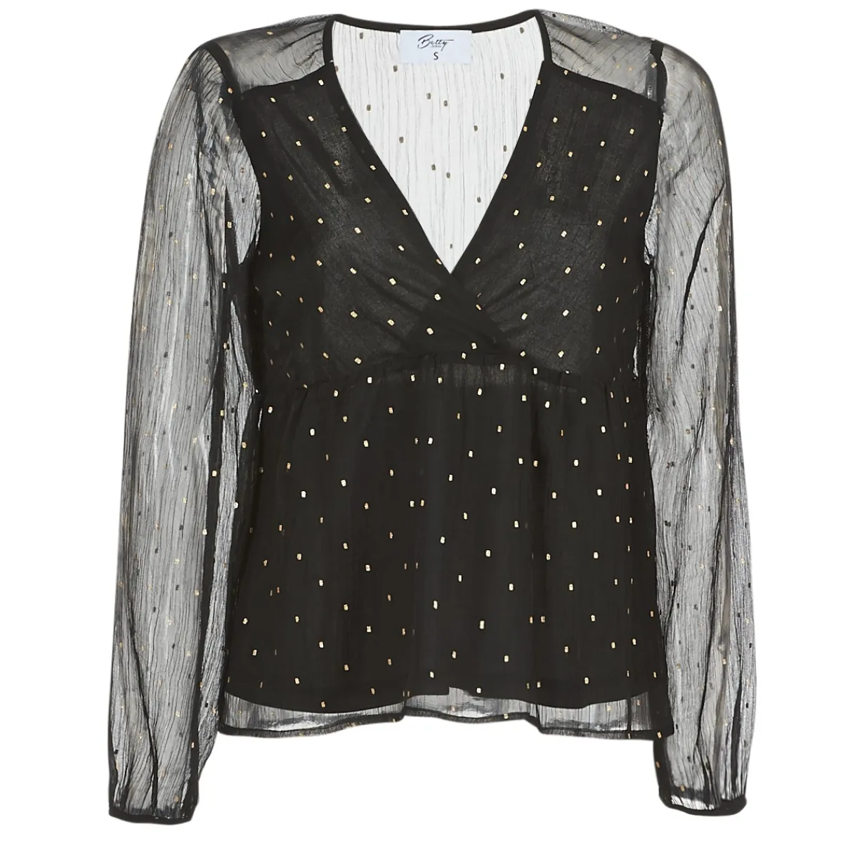 Betty London nous interpelle en proposant cette jolie blouse.Sa couleur noire est rehaussée de touches de lurex doré …