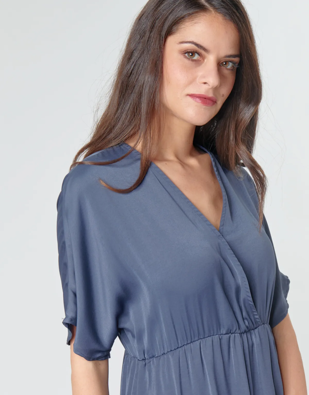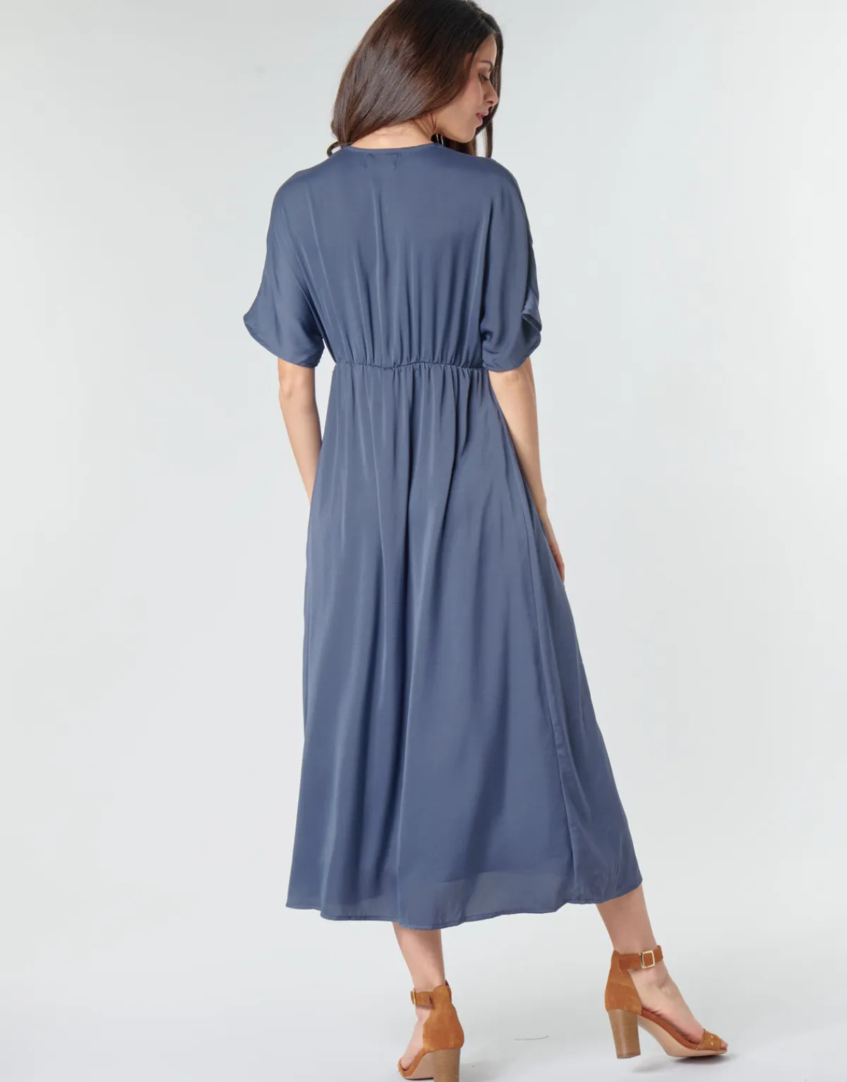 La robe longue gagne à être portée. C’est ce que l’on pense quand on voit ce modèle Betty London. Déclinée en bleu, elle sera un modèle phare du dressing.