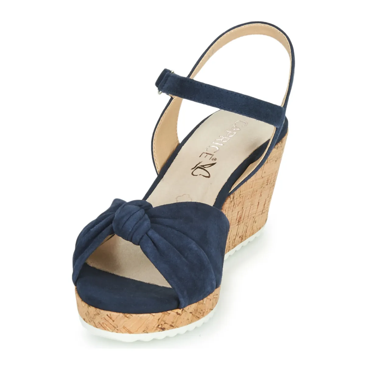 Chaussant large / Sandale mode et confort en cuir velours / compensée liège / bride réglable velcro / MODE RESPONSABLE : produit fabriqué dans une usine certifiée BSCI. Le BSCI est une démarche qui tend à améliorer les conditions sociales des travailleurs chez les fabricants de produits de consommation basés dans les pays émergents.