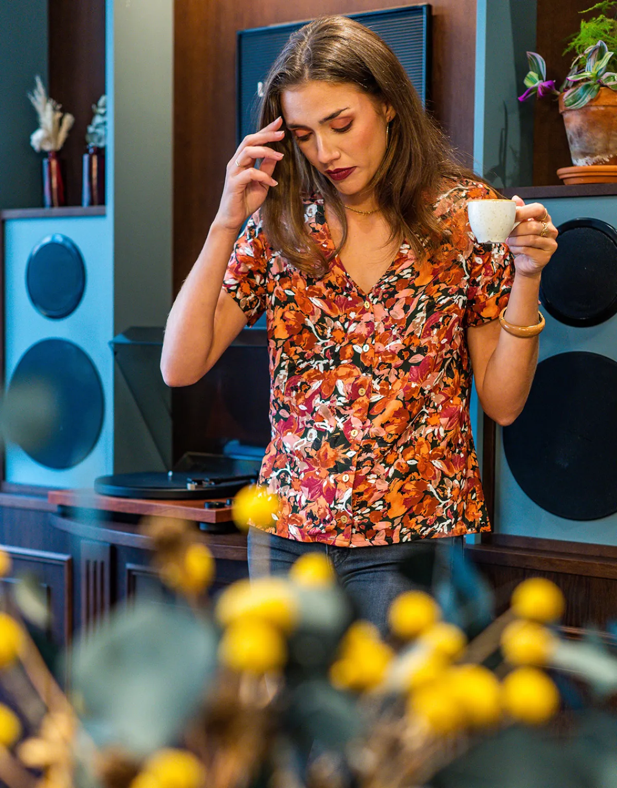 Blouse fabriquée en FranceMatière fluide agréable au porterBoutons dorés sur le devantPetit nœud à nouer sur les …