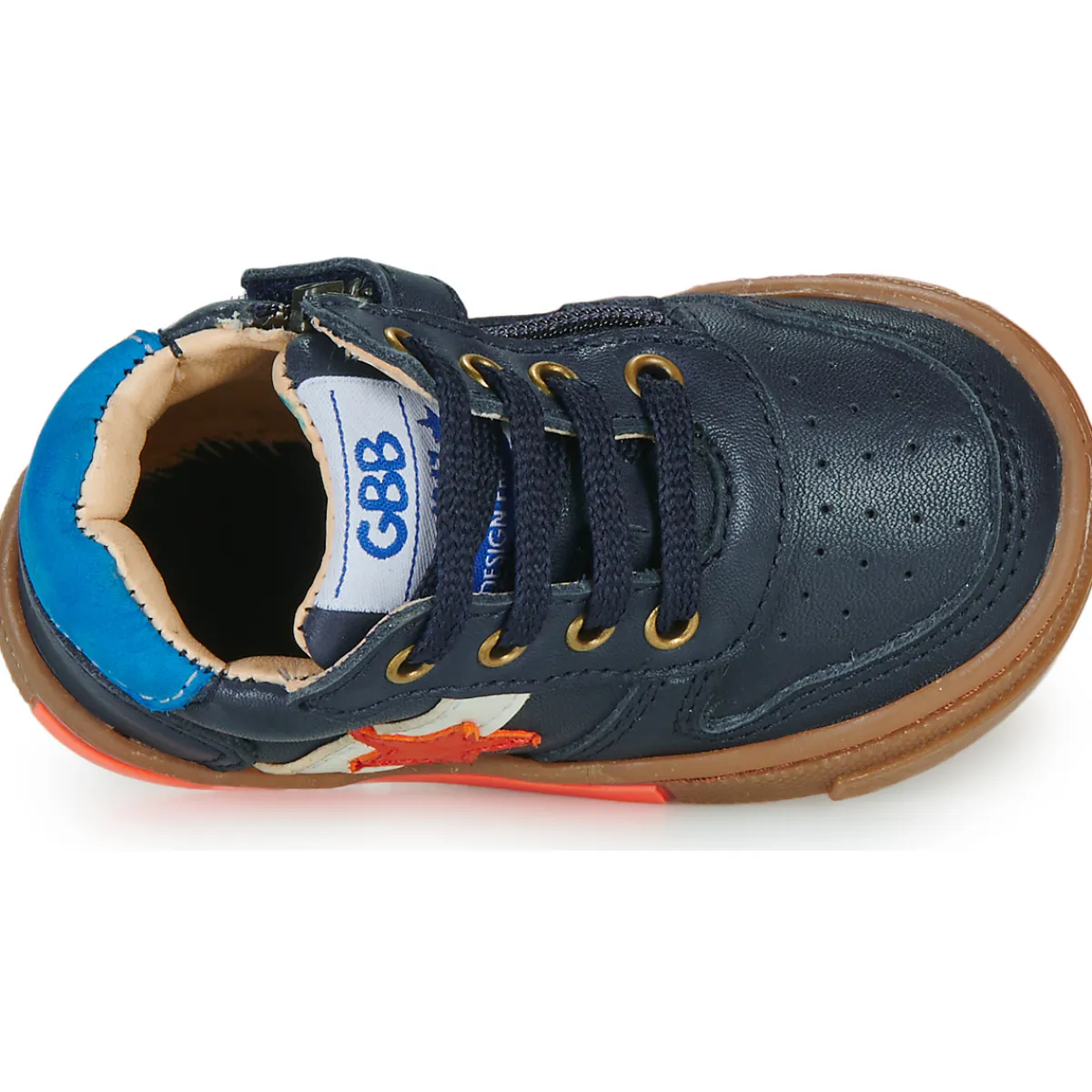 Chaussure flex, particulièrement soupleSemelle amovibleConstruction de la chaussure pensée spécifiquement pour accompagner les premiers pasContrefort asymétrique : empêche le pied de dévier de sa surface d鈥檃ppui en le maintenant dans l鈥檃xe de la marcheArrière ergonomique et emboîtantRenfort avant pour protéger les orteils des chocsRenfort en mousse à l’arrière pour protéger les molletsSemelle antidérapanteSystème de serrage par laçage permettant au talon de rester en place, et donc d’éviter la crispation des orteils.Zip et patte velcro pour éviter que la fermeture ne descende.Produit certifié sans produits nocifs par la charte Innoshoe, comme l’ensemble des chaussures GBB.