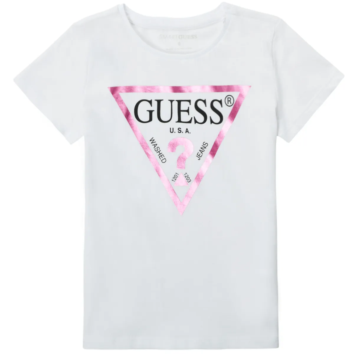 Enfilez vite ce T-shirt et affichez un look digne de la marque Guess ! Ce modèle est confectionné en coton (100%) , dans un coloris blanc très seyant. On l’associera aussi bien avec un jean qu’un bermuda.