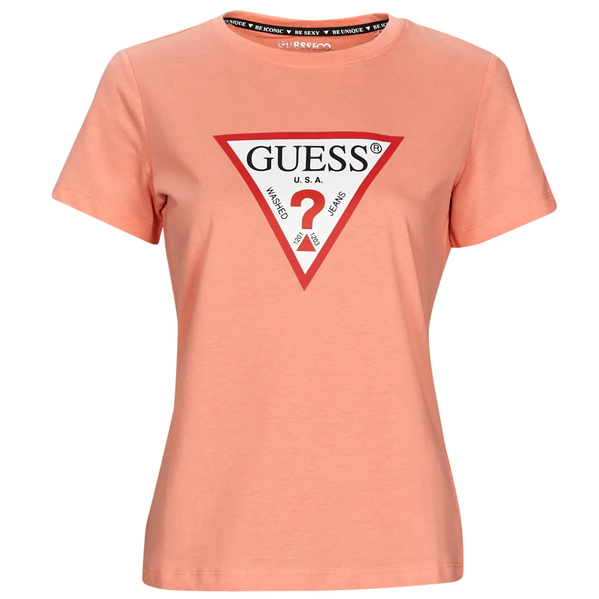 Ce T-shirt à manches courtes annonce la couleur de par son look : on est chez Guess ! Ce modèle est composé de coton …