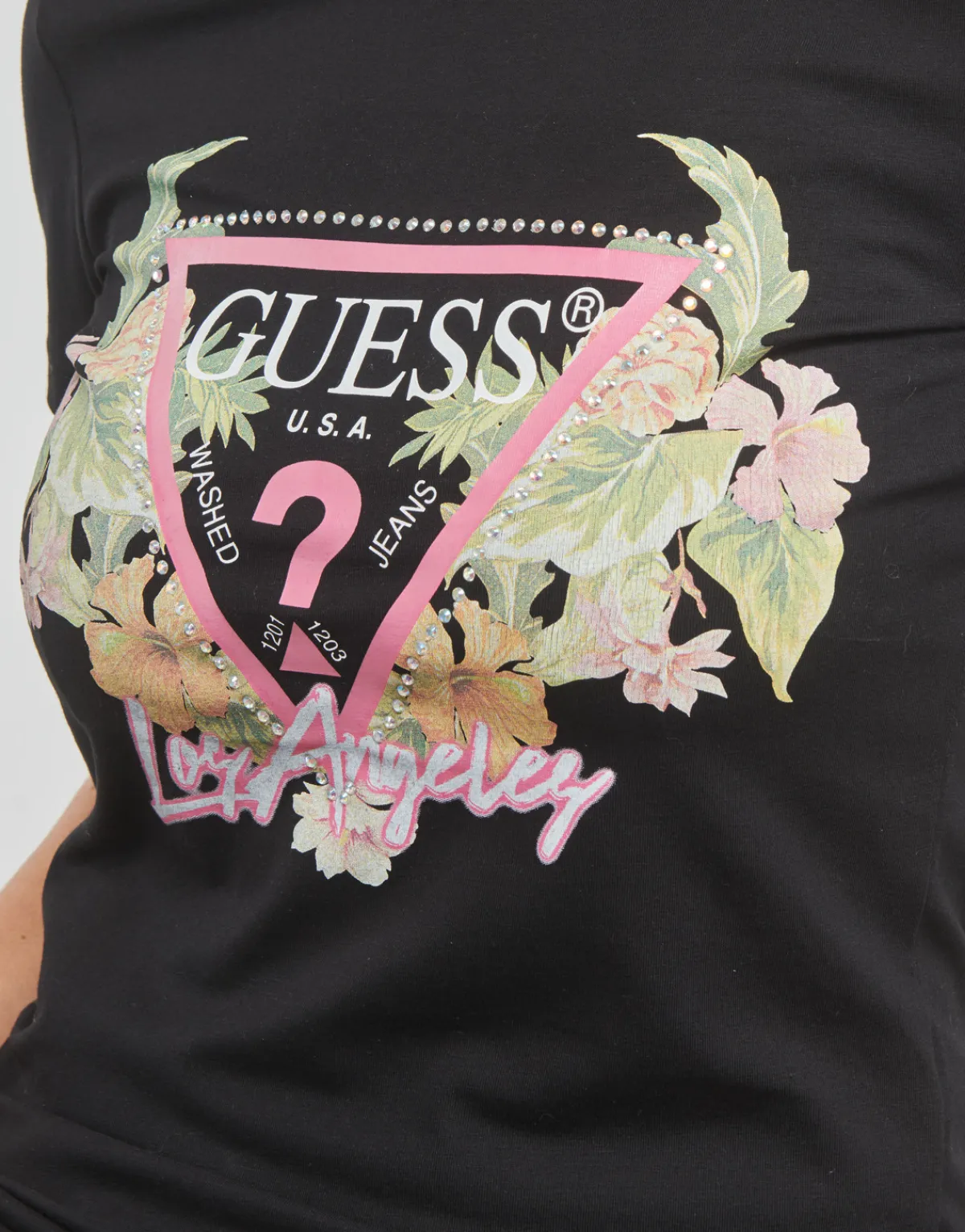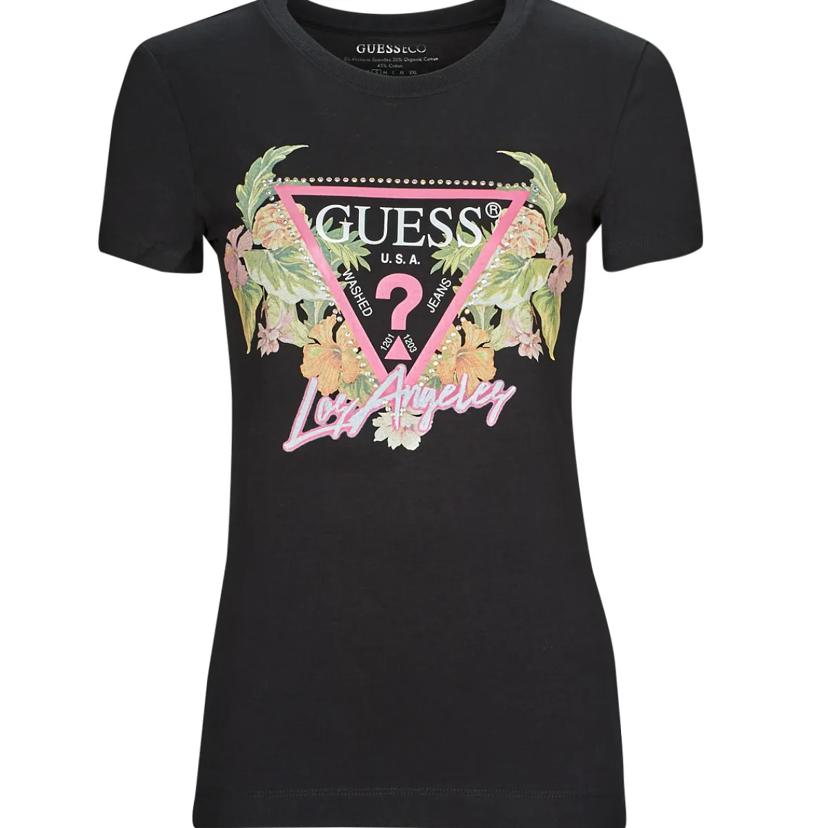 De la mode, rien que de la mode avec ce T-shirt Guess. Cette création noire confectionnée en coton (95%) et élastha…