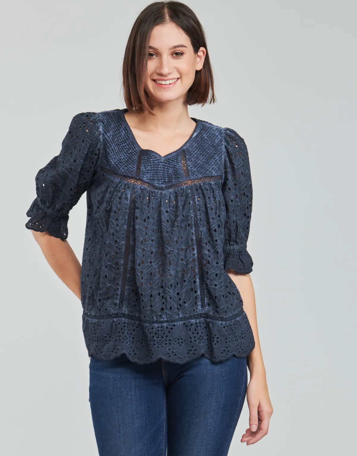 Cette jolie blouse a spécialement été conçue par Ikks pour combler les femmes. Sa coupe et sa couleur bleue confére…