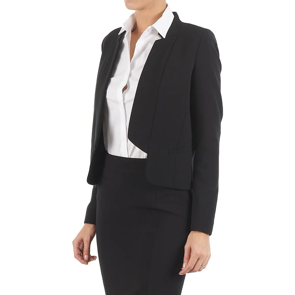 Qu’elle vienne s’accorder à sa jupe ou bien rehausser un denim brut, la veste de tailleur est un modèle incontournable du vestiaire féminin. Ce modèle signé Lola nous offre une coupe classique aux détails très modernes, comme la découpe du col géométrique.
