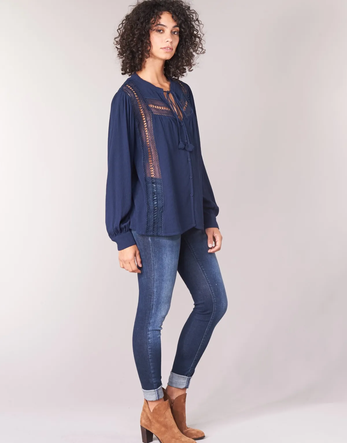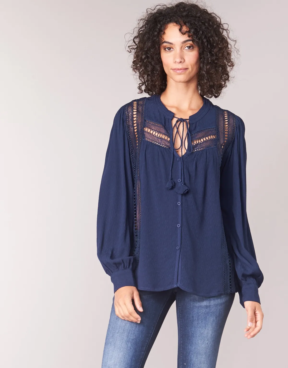 See U Soon nous interpelle en proposant cette jolie blouse.Aussi agréable que stylée, elle a tout bon.Sa couleur marine complète de manière idéale un vestiaire féminin.La marque nous séduit une fois de plus.