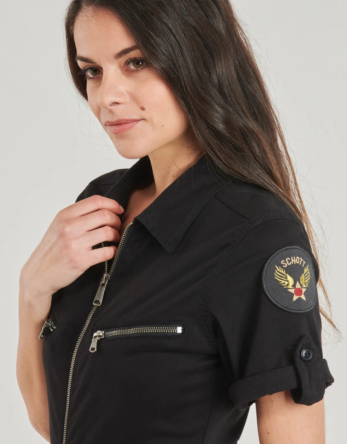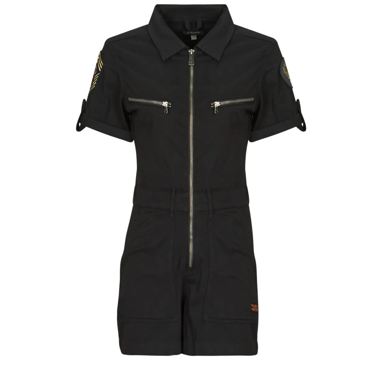 Le it-vêtement du moment, c’est incontestablement la combinaison. Celle-ci étant signée Schott, cela nous fait deux …