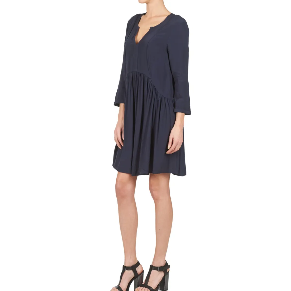 On craque complètement pour cette robe courte de la marque See U Soon ! Une confection en viscose (100%) et une couleur bleue : c’est le tandem gagnant qui y réside. Et puisque rien ne nous échappe, on s’attardera un instant sur le travail qui a été fait autour de ses finitions, la rendant ainsi unique et féminine, comme nous le sommes au naturel.