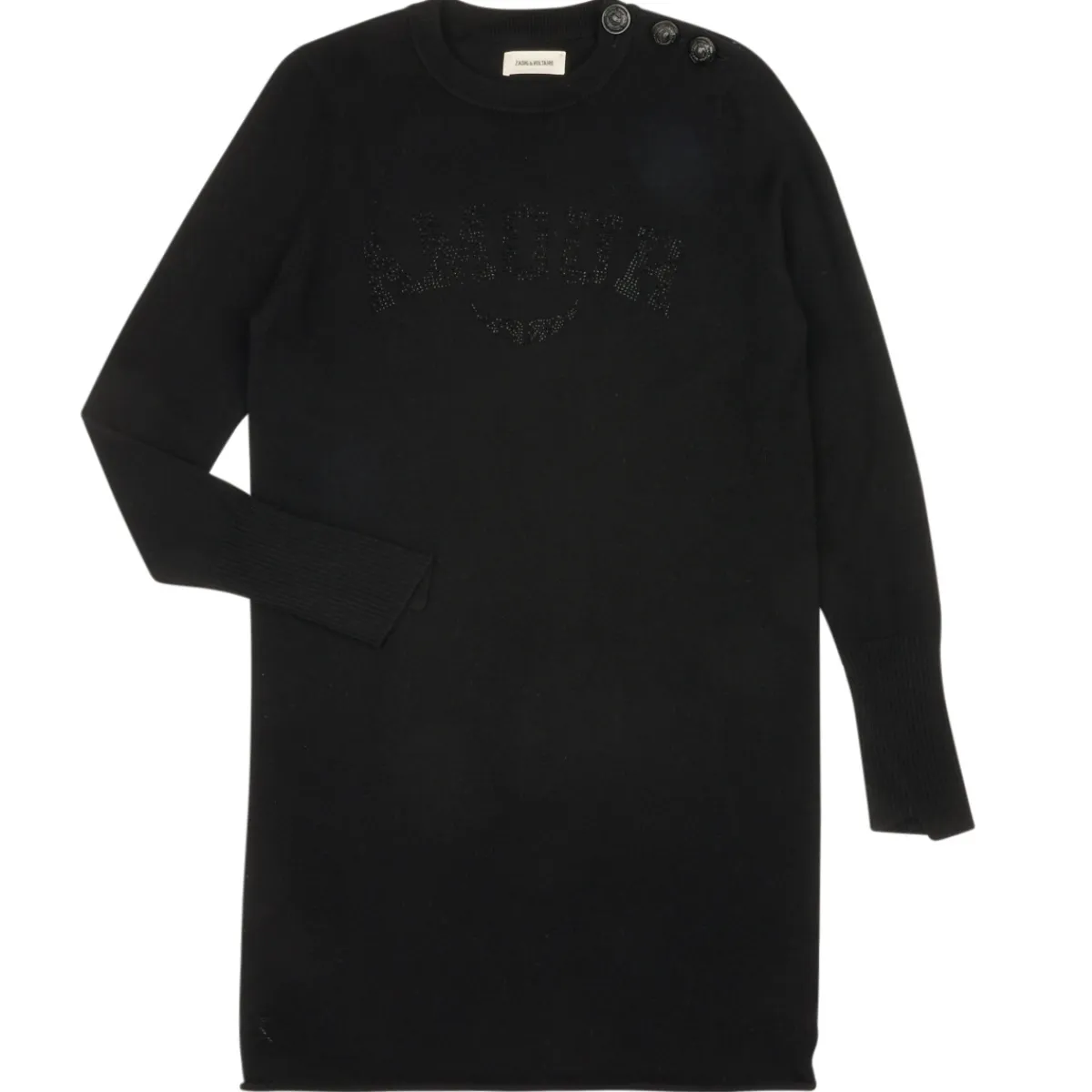 Pour les plus précoces des modeuses, il y a cette robe de la marque Zadig & Voltaire. Couleur noire et composition lain…